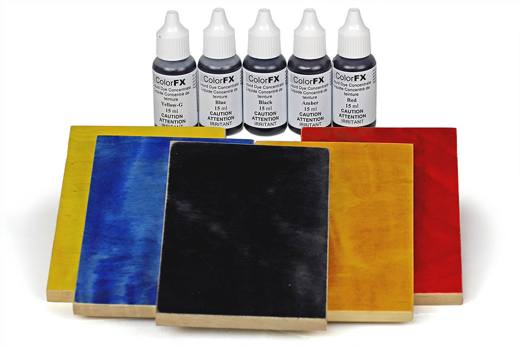 ColorFX Liquid Dyes are concentrated metal complex acid dyestuff dissolved in glycol ether solvents. The dye concentrates can be diluted with water, alcohol and numerous other mediums including waterbased finishes, stains, shellac solutions and many solvent lacquers, finishes and stains.